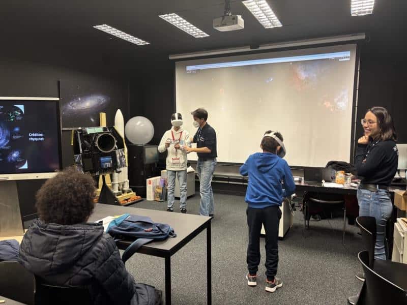 Una de ellas se ha llevado a cabo a través de la Asociación Pequeño Deseo y ha consistido en una experiencia científica espacial virtual para cumplir los deseos de dos niños, Dante y Alberto. Ambos han podido visitar además las instalaciones del Centro de Astronomía Espacial. A lo largo de la actividad, han podido disfrutar de la ventana al universo de ESASky y explorado las salas de control de las misiones científicas de SMOS, el Centro de Procesado de Datos, además de su ‘Wall of Fame’.